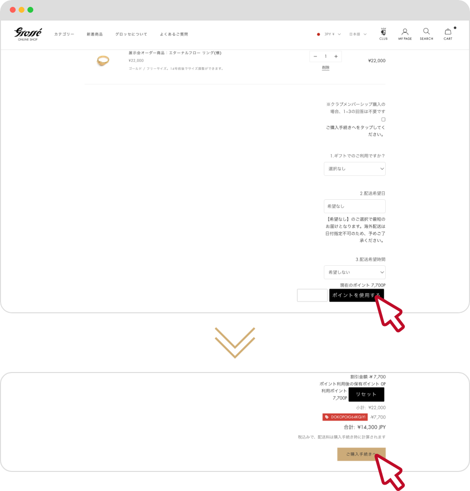 ※展示会専用クーポンコードはメールマガジンやグロッセクラブニュースページにてご確認いただけます。